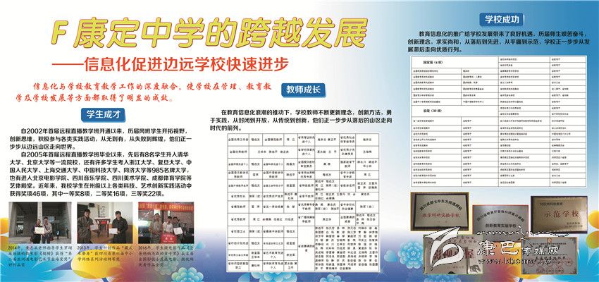 輝煌業(yè)績俱往矣,而今邁步從頭越??刀ㄖ袑W(xué)成功創(chuàng)建四川省一級示范性普通高中,康定中學(xué)歷史翻入新的一頁。學(xué)校將圍繞“建盛德實學(xué)康中校,做豪邁和美康中人”的“康中夢”,把康中打造成全州基礎(chǔ)教育窗口、全省中學(xué)教育名校、全國藏區(qū)教育典范。