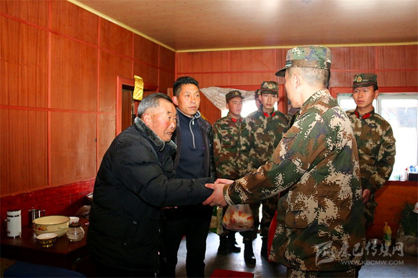 在困難戶(hù)拉姆老人家中,武警官兵為其送上了慰問(wèn)金和慰問(wèn)品。老人拉住官兵的手,不停地說(shuō):“感謝金珠瑪米!”