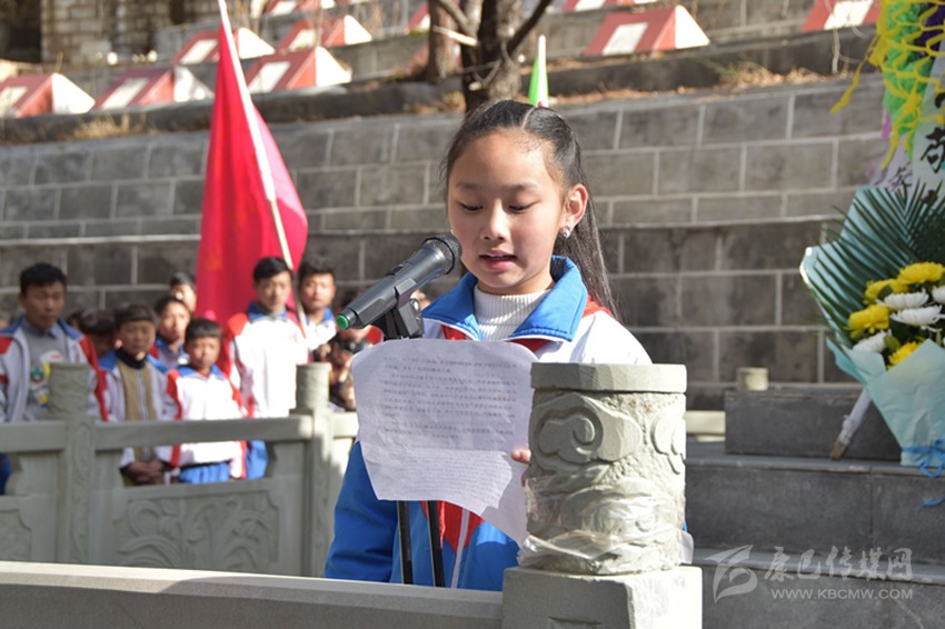 孩子們手捧自己制作的白花,面向著革命烈士紀(jì)念碑,表情肅穆。在向烈士默哀3分鐘后,活動發(fā)起者和學(xué)校師生代表們聲音洪亮、語氣激昂向紀(jì)念碑前的所有參與者激情演講,盡情的表達(dá)著他們對先烈的緬懷之情。