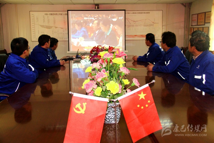 負責(zé)雀兒山隧道施工的中鐵一局干部職工正在收看開幕大會直播。