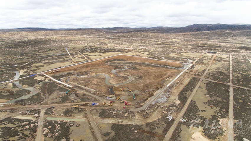 在海子山散落著數(shù)米寬巨石的曠野上,一塊有10個(gè)足球場(chǎng)大的圓形區(qū)域已經(jīng)成型,挖土機(jī)忙著挖出3個(gè)“品”字形、深4.5米的巨型水池。