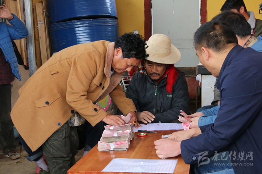 農(nóng)牧民喜領(lǐng)分紅資金。