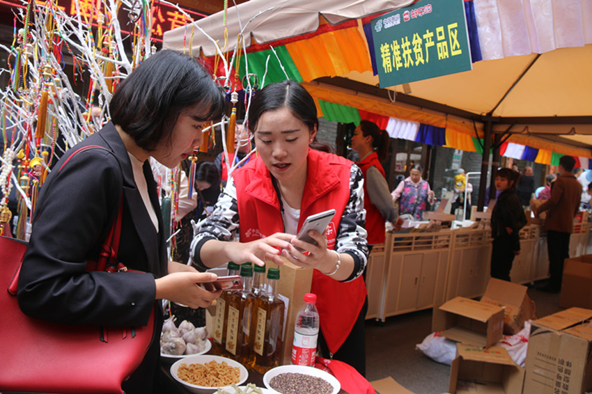 電商元素突出,注重電商扶貧是此次展銷活動(dòng)的另一特點(diǎn)。此次展銷活動(dòng)采用了“線上線下互動(dòng)”的模式,既有現(xiàn)場售賣,又有線上體驗(yàn);掃碼關(guān)注店鋪微信公眾號(hào),掃碼進(jìn)入網(wǎng)店頁面,微信付費(fèi)享受折扣等,顯示電商思維的營銷手段層出不窮;各參展商家為推廣自家網(wǎng)點(diǎn)開設(shè)的限時(shí)低價(jià)搶購活動(dòng),更引發(fā)數(shù)百名消費(fèi)者爭相參與。而電商扶貧則是此次活動(dòng)的出發(fā)點(diǎn)之一。活動(dòng)不僅專門設(shè)立有精準(zhǔn)扶貧產(chǎn)品專區(qū),而且以貧困村農(nóng)牧民專業(yè)合作社為主要參展企業(yè)。所有參展企業(yè)均為免費(fèi)入駐參展,活動(dòng)主辦方還盡力保障企業(yè)利潤。