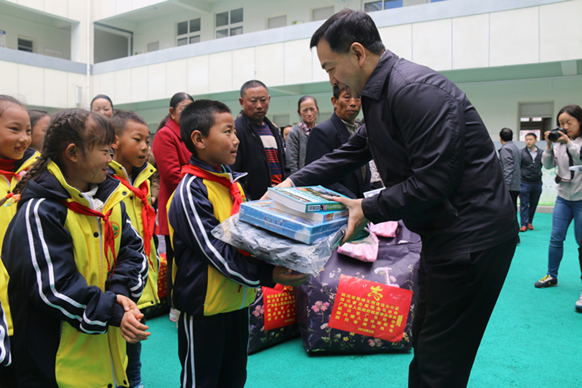 當(dāng)天上午,“粵企代表為藏區(qū)困難群眾、貧困學(xué)生和留守兒童捐贈物資發(fā)放儀式”在康定市實(shí)驗(yàn)小學(xué)舉行,廣東企業(yè)代表向該校20名留守兒童和困難學(xué)生發(fā)放了包括玩具、書包、圖書在內(nèi)的節(jié)日禮物,向康定市的30戶家庭困難的群眾發(fā)放了棉被、洗漱包、保溫杯等慰問品。