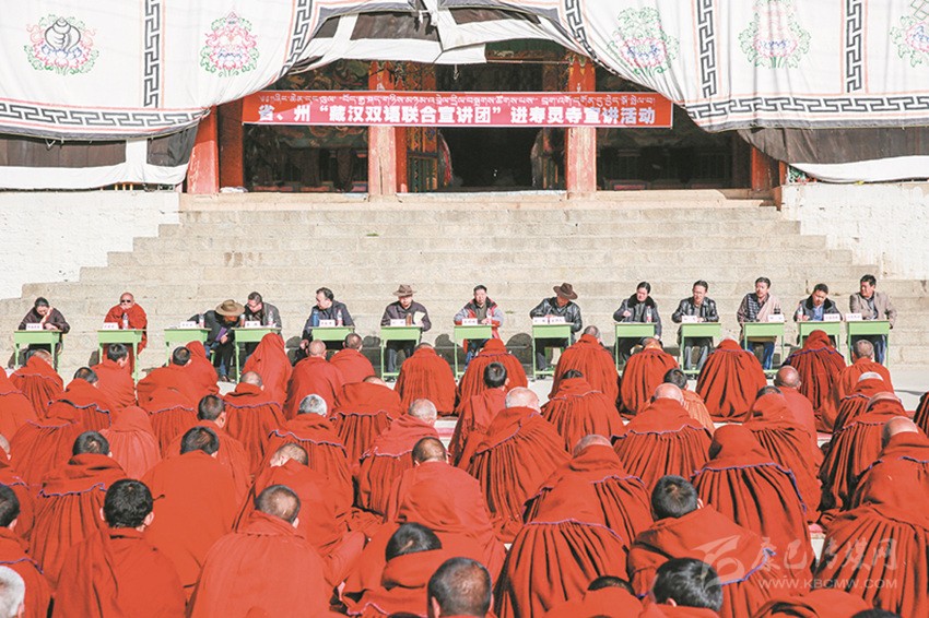 在法律進(jìn)寺廟方面,我州持續(xù)深化法律進(jìn)寺廟“四進(jìn)七有”活動(dòng),健全完善寺廟法治宣傳欄、法律圖書(shū)角、法律服務(wù)聯(lián)系點(diǎn)、法律明白人管理等工作制度,建成寺廟法治宣傳欄598個(gè)、圖書(shū)角504個(gè)、法律服務(wù)聯(lián)系點(diǎn)489個(gè),培訓(xùn)培養(yǎng)寺廟“法律明白人”947人;組織開(kāi)展《憲法》《刑法》《刑事訴訟法》《國(guó)家安全法》《治安管理處罰法》《道路交通安全法》《宗教事務(wù)條例》進(jìn)寺廟專(zhuān)項(xiàng)活動(dòng),全州共開(kāi)展法律入寺宣傳1900余場(chǎng)次,覆蓋寺廟532座、僧尼8萬(wàn)余人次。