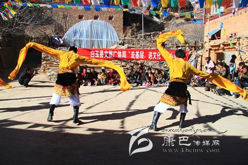 本網(wǎng)訊(陳波 馬志勇)春節(jié)將至,白玉縣組織該縣文藝工作組,到該縣金沙鄉(xiāng)八吉村、沙丁村開展了以黨的十八大和“愛國(guó)、守法、感恩、團(tuán)結(jié)”為主題的“送文藝下鄉(xiāng)”活動(dòng)。20余名藝術(shù)團(tuán)的演員為當(dāng)?shù)厝罕娝腿チ藘?yōu)秀、精彩的文藝演出。