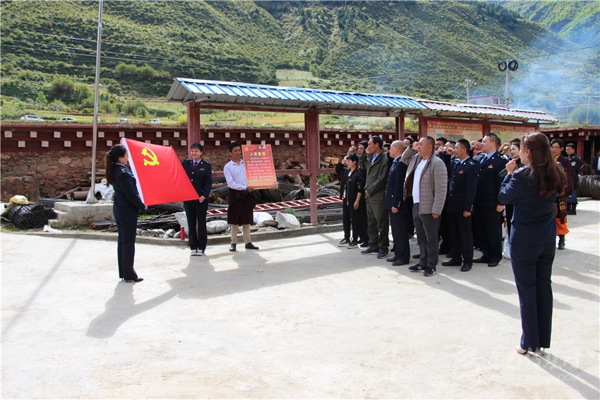 9月18 日,理塘縣稅務(wù)局黨委、局機(jī)關(guān)黨支部聯(lián)合該縣覺吾鄉(xiāng)黨委、覺吾鄉(xiāng)四合村黨支部共同開展了“不 忘初心、牢記使命”主題教育和“守初心、擔(dān)使命、聚四合、謀發(fā)展”主題黨日活動(dòng)。圖為全體黨員重溫入黨誓詞。 理塘縣委中心報(bào)道組 葉強(qiáng)平 張樹義 攝影報(bào)道