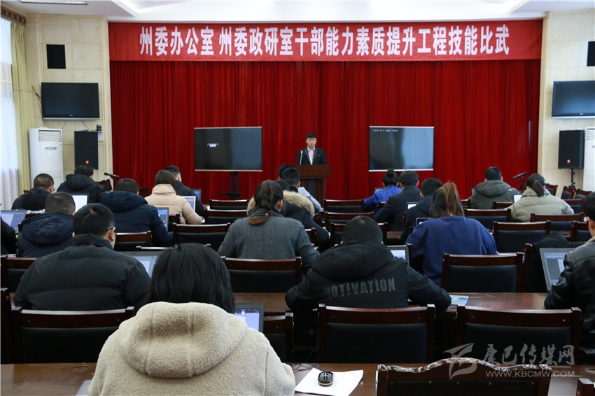 本網(wǎng)訊 為深入貫徹落實習(xí)近平總書記關(guān)于建設(shè)高素質(zhì)干部隊伍要求,打造一支適應(yīng)新時代新形勢新要求的復(fù)合型干部隊伍,結(jié)合“不忘初心、牢記使命”主題教育,11月29日,州委辦公室、州委政研室開展了干部素質(zhì)技能大比武活動。來自州委辦公室、州委政研室的40余名干部參加了本次技能競賽。