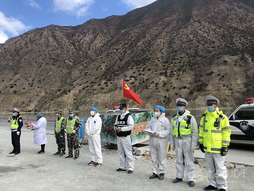 “我志愿加入中國共產(chǎn)黨,擁護(hù)黨的綱領(lǐng),遵守黨的章程……”2月1日,在海拔4200米的理塘縣禾尼檢疫站,醫(yī)生、民警中的共產(chǎn)黨員們重溫入黨誓詞,表達(dá)誓死戰(zhàn)勝新型肺炎疫情的決心。