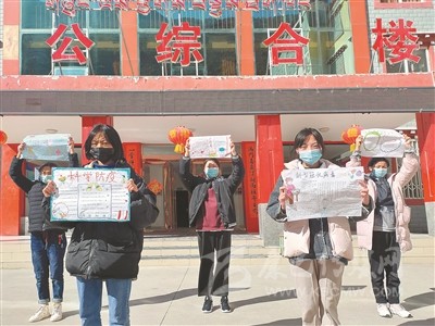 孩子們展示制作的防疫手抄報(bào)。