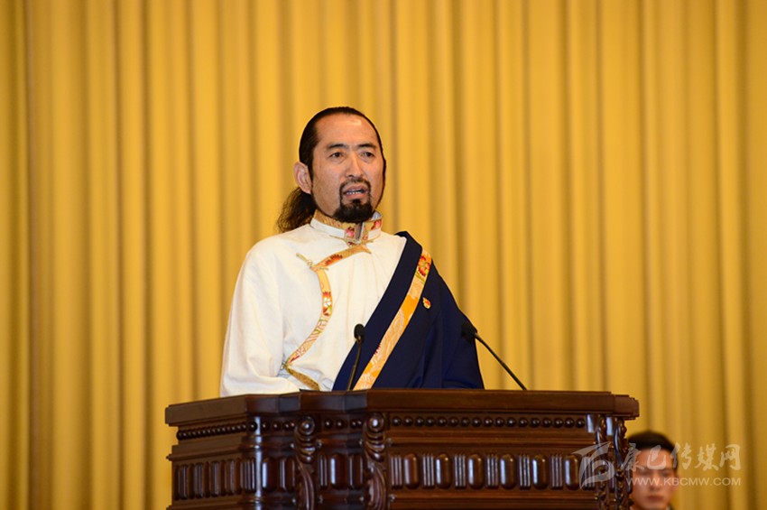 圖為其美多吉在人民大會(huì)堂作報(bào)告。