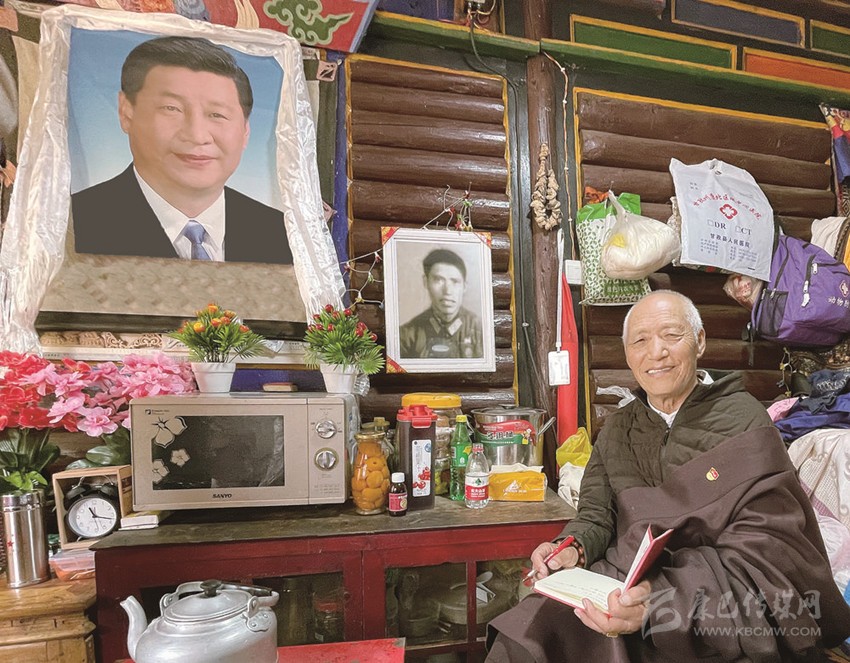 “這本上世紀(jì)60年代印的藏文版毛主席語錄,我不知道翻了多少遍,都快要翻爛了?!比A發(fā)蒼顏,中氣十足的多加對(duì)記者笑言:“我從小是‘娃子’,根本認(rèn)不到字,不管是藏漢文;但我現(xiàn)在能流利地讀寫藏文,全是藏民團(tuán)里會(huì)藏文的漢族戰(zhàn)友教的;更有意思的是,我的漢話是藏民團(tuán)里會(huì)說四川話的藏族戰(zhàn)友教的!”