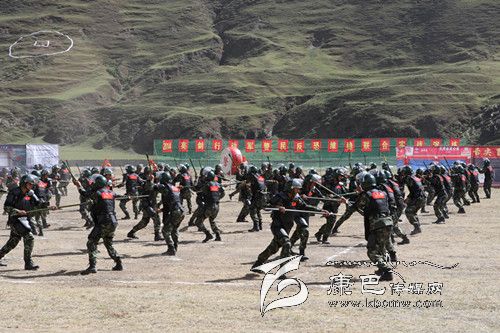 在實(shí)戰(zhàn)技能演練中,各單位都表演了自己的拿手絕技:由武警甘孜州支隊(duì)雪山飛虎隊(duì)20名官兵演練的特種射擊;武警四川總隊(duì)第二支隊(duì)演練的格斗術(shù);中國人民解放軍甘孜軍分區(qū)獨(dú)立營120名官兵演練刺殺操;武警甘孜支隊(duì)一大隊(duì)和三大隊(duì)200名官兵演練的防暴對抗;雪山飛虎隊(duì)隊(duì)員帶來的硬功表演;州公安局特警支隊(duì)特警演練的“雪狼十七式”、摔擒配套動作、實(shí)戰(zhàn)對抗。據(jù)了解,“雪狼十七式”是甘孜公安特警通過六年來在高原維穩(wěn)駐訓(xùn)、處置突發(fā)事件,摸索出來的摔擒動作,具有極強(qiáng)的殺傷力,能瞬間制敵。它是我州特警隊(duì)員實(shí)戰(zhàn)中克敵制勝的法寶,是特警隊(duì)員必備的基本功。