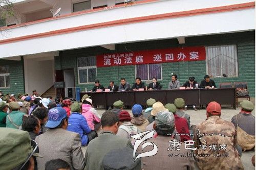 香格里拉人民法庭坐落于距“稻城亞丁國(guó)家級(jí)風(fēng)景區(qū)”僅30公里的稻城縣香格里拉鎮(zhèn)。該法庭轄區(qū)為貢嶺、東義兩個(gè)片區(qū)以及香格里拉鎮(zhèn)的14個(gè)行政村、1個(gè)社區(qū)。轄區(qū)面積達(dá)4000余平方公里。轄區(qū)內(nèi)以山區(qū)為主,道路崎嶇、交通不便,海撥、地域跨度大,最大的落差近3000米,距轄區(qū)內(nèi)最遠(yuǎn)的鄉(xiāng)鎮(zhèn)100公里。