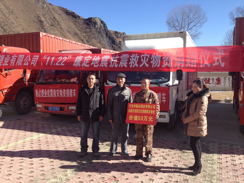 為康定“11·22”地震捐贈抗震救災(zāi)物資。
