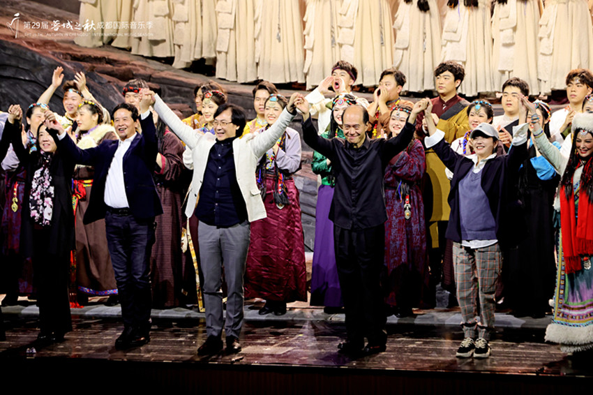 原創(chuàng)歌劇《康定情歌》演職人員謝幕。
