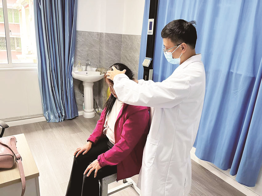 徐英俊通過檢查發(fā)現(xiàn)夫妻倆都患有較嚴(yán)重的退化性膝關(guān)節(jié)炎、關(guān)節(jié)腔積液、內(nèi)外側(cè)韌帶受損等疾病。經(jīng)過慎重考慮,徐英俊決定為其進(jìn)行中西醫(yī)結(jié)合治療,并為他們制定了一套詳細(xì)全面的治療方案。超聲引導(dǎo)下關(guān)節(jié)穿刺、超聲引導(dǎo)下隱神經(jīng)阻滯、頰針療法、針刺療法……徐英俊因地制宜開展了多項(xiàng)新技術(shù)、新項(xiàng)目,效果立竿見影。