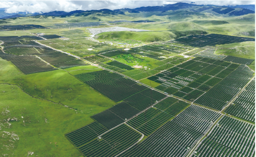 不只是暫時的就業(yè),更有長遠的利益。光伏發(fā)電建設租賃牧民草場,租金為每年200元/畝,為群眾產生很大一筆固定收入。同時,以生態(tài)保護助力鄉(xiāng)村振興,國家電投同步開展甘孜實證基地建設與“光伏+生態(tài)修復”研究,通過“綠色施工+定量監(jiān)測+主動修復”技術,開展技術組合實證、生態(tài)修復實證?!肮夥敛荩B(yǎng)?!睂崿F(xiàn)三重產業(yè)疊加,帶動鄉(xiāng)村振興、生態(tài)治理、綠色交通等產業(yè)集群實證方案落地,建設區(qū)高原生態(tài)環(huán)境可控在控,持續(xù)向好,走上生態(tài)效益與經濟效益互利共贏的“陽光大道”,讓群眾盡享“陽光紅利”。