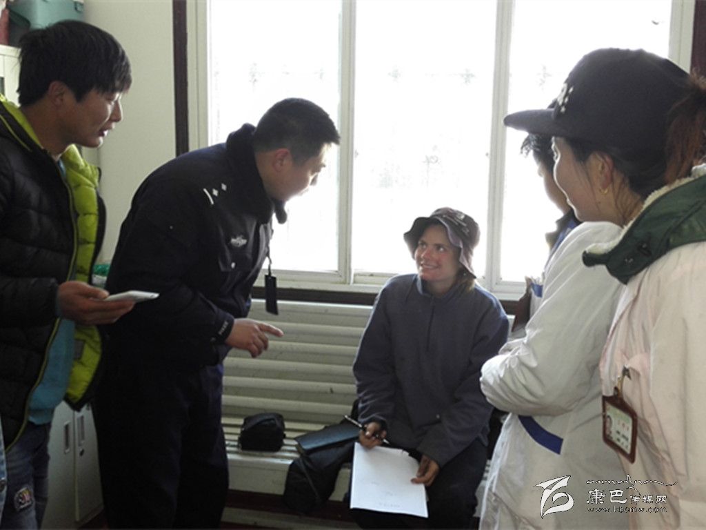 當(dāng)日中午12時,開展完“結(jié)對認(rèn)親”工作返回桑堆鎮(zhèn)派出所集合的國保大隊民警和看守所民警,忽然看見一名神色疲憊的外國女游客推著自行車,正在派出所門前與民警比劃著什么?有一定英語基礎(chǔ)的民警見狀后圍了上去,主動給派出所民警“解圍”。但是,她說的外語并不流暢,交流起來十分困難。經(jīng)過手勢比劃,加上多方英語對話,民警得知了她是比利時人,名叫ILONA,是一名資深的騎游愛好者,已騎自行車游覽了大半個中國,準(zhǔn)備騎自行車回國。當(dāng)日正從稻城縣騎自行車出發(fā)前往理塘縣,但到了桑堆鎮(zhèn)后感覺身體難受,體力不支,難以繼續(xù)堅持前行,就打算在當(dāng)?shù)卣乙粋€衛(wèi)生院先檢查身體。比利時人平時主要講的是法語,所以英語講起來有點不順暢。當(dāng)時,國保大隊民警由于有其他要事在身,不得不先行離開,看守所民警蘇適英語水平不錯,便主動帶她到鎮(zhèn)衛(wèi)生院看病。