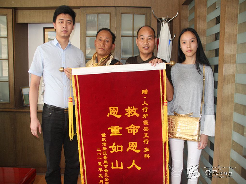 9月8日,重慶墊江人周才云攜女兒周瑩、女婿李超,從千里之外專程趕到人行爐霍縣支行向支行領(lǐng)導(dǎo)贈(zèng)送“救命恩人,恩重如山”錦旗和感謝信。9月10日,爐霍縣委宣傳部在人行爐霍縣支行召開會(huì)議,對(duì)該行職工加科助人為樂的舉動(dòng)進(jìn)行表彰。
