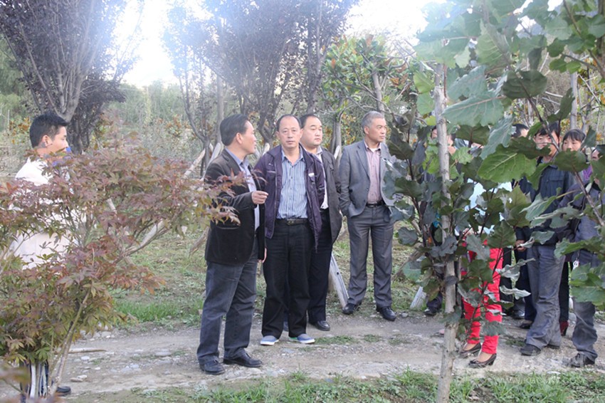 代敬濤和局領導查看苗木長勢情況。