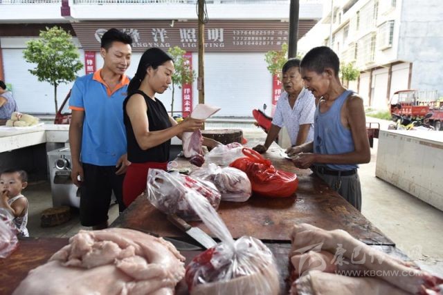 8月15日,南部縣長坪鎮(zhèn)農(nóng)貿(mào)市場(chǎng),正在買肉的周強(qiáng)善。攝影 張可凡