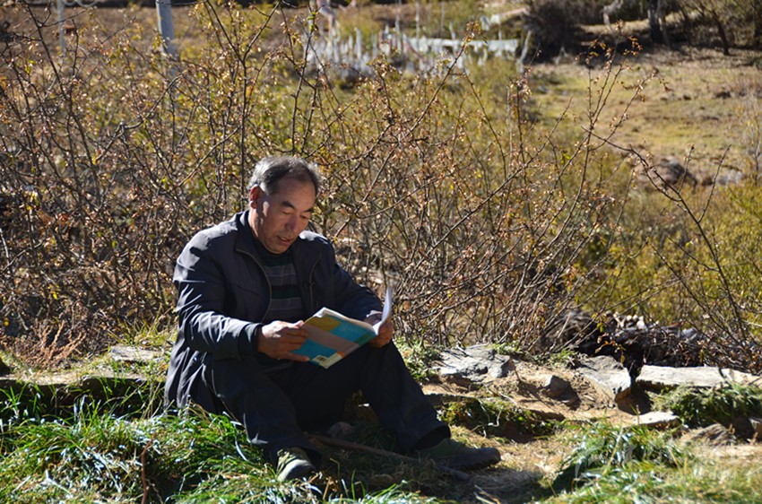 那一年,教室的過道里燃起熊熊的炭火,孩子們坐在溫暖的教室里,那郎朗的讀書聲久久縈繞在藏寨的上空。就這樣,復(fù)式班級的教學(xué)工作他一干就是十余年,后來,村里的兩位高中畢業(yè)生也走進(jìn)長納村小,長納村小的師資力量得到了補(bǔ)充。那一年,長納村小成立第一個(gè)教研組,阿布里擔(dān)任語文、數(shù)學(xué)教研組組長,在教研會議上,他將自己的教學(xué)經(jīng)驗(yàn)無私傳授給兩位代課教師。