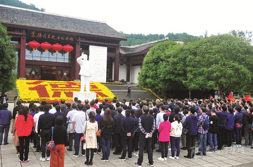 站在朱德同志漢白玉像前,《江蘇國信》雜志綜合部主任倪劍萍沉思良久。他說:“我從小就聽長輩們說起朱德同志一生的事跡,今天第一次來到這里,再一次深切緬懷老一輩無產(chǎn)階級革命家的豐功偉績,讓我感受頗深?!蹦邉ζ颊J為,要繼續(xù)深入挖掘儀隴紅色旅游資源,傳承紅色基因,教育下一代要學習老一輩革命家朱德總司令始終堅持共產(chǎn)主義信念、永遠忠誠于黨和人民事業(yè)的崇高精神。