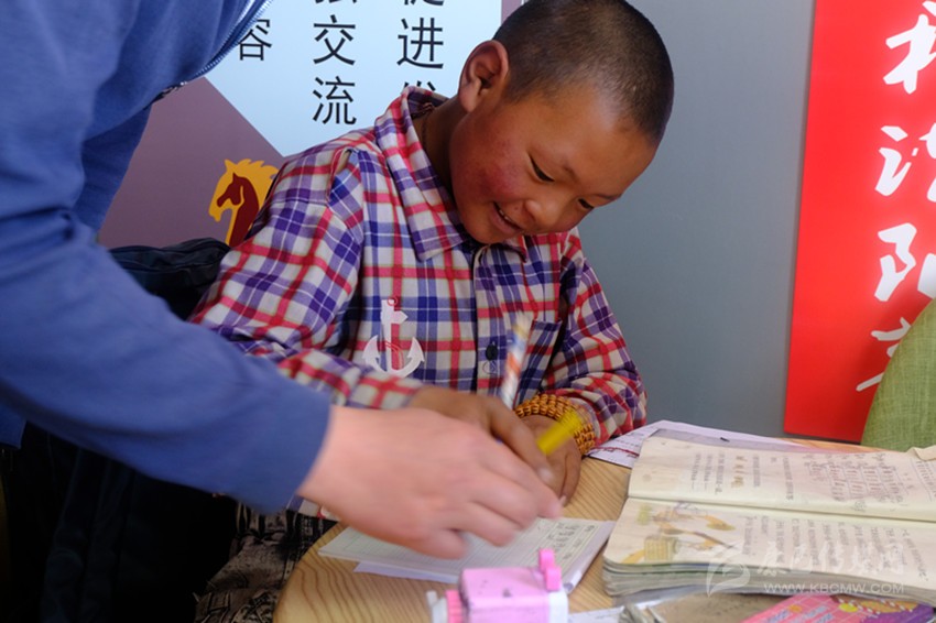 兩年前,小波家享受異地扶貧搬遷政策,隨父母從塔子鄉(xiāng)搬進(jìn)了安康社區(qū)的新家,小波就近在色達(dá)二完小讀書(shū),現(xiàn)在已經(jīng)是二年級(jí)的學(xué)生了。由于學(xué)習(xí)基礎(chǔ)薄弱,他每個(gè)周末都會(huì)到社區(qū)里的“小課堂”補(bǔ)習(xí)。