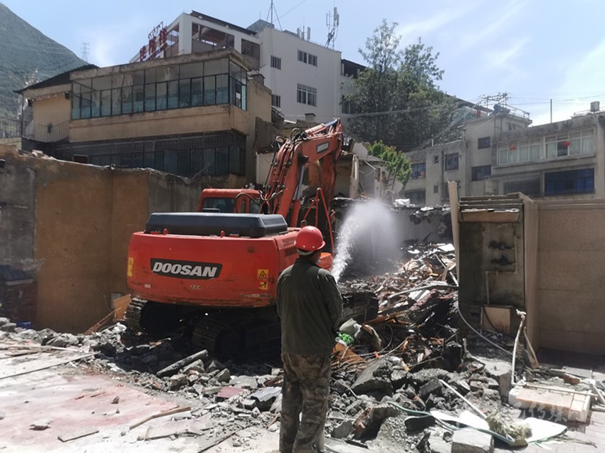 4月15日,在瀘定縣舊城區(qū)改造施工現(xiàn)場(chǎng),一輛挖掘機(jī)揮舞著長(zhǎng)臂,只見一棟破舊的老屋轟然倒地……“拆得好!這些老房子以前緊挨著馬路,拆除后把人行道讓出來了,路更寬敞了,我們走路也更舒心了?!眹^的群眾拍手稱贊。