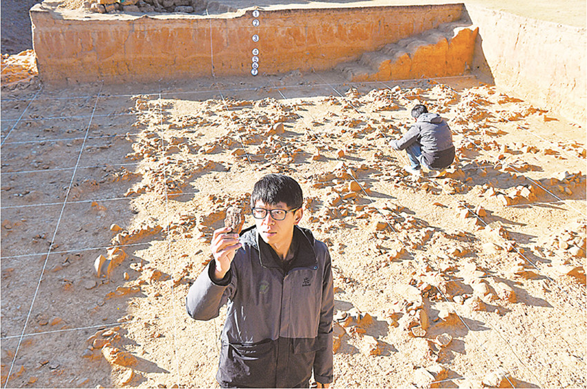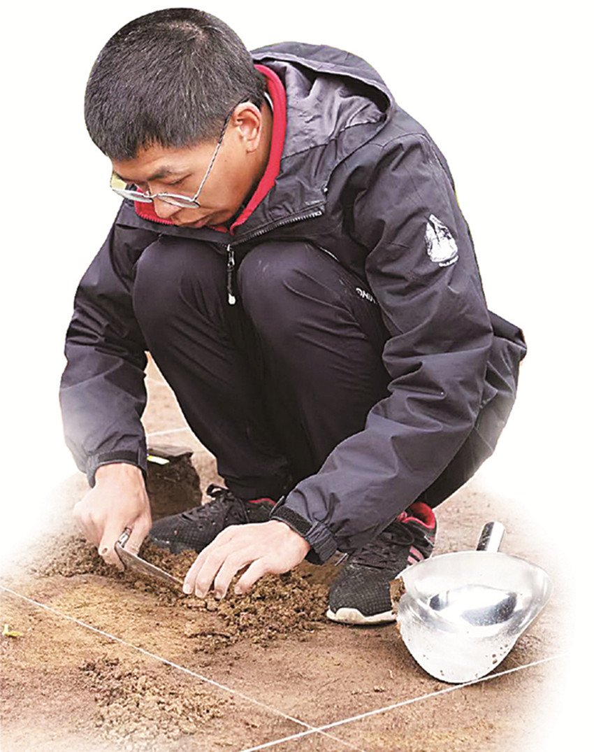 譚培陽(yáng)在稻城皮洛遺址從事發(fā)掘工作。