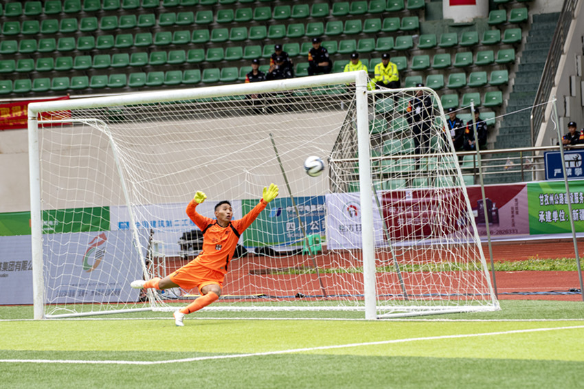 比分領(lǐng)先的甘南隊(duì)此后通過(guò)傳導(dǎo)球試圖控制住場(chǎng)上局勢(shì),昌都隊(duì)則全力逼搶尋求機(jī)會(huì),第16分鐘,昌都隊(duì)員一記倒鉤中場(chǎng)解圍助攻,舒展的動(dòng)作引得全場(chǎng)點(diǎn)贊。在第37分鐘,昌都隊(duì)10號(hào)邊路中傳,甘南隊(duì)55號(hào)一記慣性解圍動(dòng)作卻將球推向自家球門(mén),門(mén)將始料未及,一個(gè)“烏龍球”將比分改寫(xiě)為1:1,雙方回到同一起跑線。下半場(chǎng)易邊再戰(zhàn),昌都隊(duì)通過(guò)更換進(jìn)攻組合制造出更多威脅,但多次沖擊對(duì)方球門(mén)未果,導(dǎo)致場(chǎng)上局勢(shì)一度膠著。