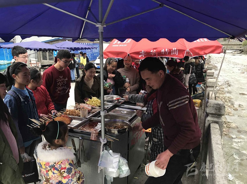 那么真實(shí)情況到底如何呢?7日,記者專門來到康定中學(xué)走訪調(diào)查。記者搭乘出租車前往學(xué)校,途中司機(jī)卻回應(yīng)“康中校門口那一段全是賣炸洋芋、炸雞腿的攤攤,車子根本開不過去,只能提前下車?!碑?dāng)記者步行過橋到達(dá)校門口路段時(shí),雜亂無序而又異常喧鬧的場(chǎng)面立刻映入眼簾。約摸十來家燒烤油炸“流動(dòng)攤點(diǎn)”上,商販們手中的烤具上下翻飛,幾十名身著“康定中學(xué)”校服的學(xué)生駐足其間,從校門出入的車輛不斷鳴笛避讓。烤面筋、炸土豆、烤雞腿,濃濃的油煙、各種調(diào)料混合的氣味、滋滋的油炸聲……儼然一副“美食街”的火爆景象。