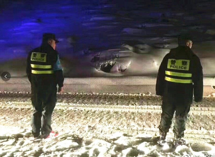 康定市公安局組織60余名警力連夜上山排堵疏導(dǎo),鋪灑防滑沙,幫助過(guò)往車(chē)輛上掛鏈條,被困司乘人員逐漸離開(kāi)折多山。