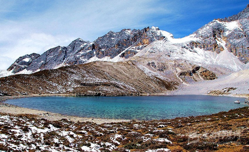 五色海又名登崇措,舍利海一意為吉祥海,五色海由于光的折射下,產(chǎn)生五種不同顏色而得名:其真名為“單增措”,它位于仙乃日與央邁勇之間,海拔4700米,湖面呈圓形。冰谷下伸至湖畔,雪山倒影湖面,呈現(xiàn)奇幻的色彩。是藏區(qū)著名的圣湖(佛經(jīng)中贊譽(yù)該湖與西藏羊卓雍措齊名),據(jù)傳能“返演歷史,預(yù)測未來”,還有很多宗教上的傳說。