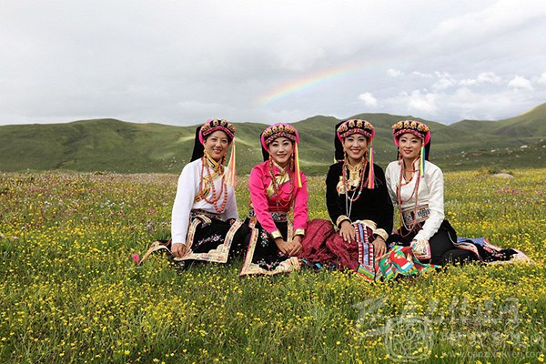 藏族姑娘同漢族姑娘一樣辮一根獨(dú)辮子,辮子的根部用紅頭繩扎成約四寸長的發(fā)枕,藏名叫“呷糾”。唯獨(dú)不同的是藏族姑娘獨(dú)辮子成三角形盤于頭頂,更顯得美觀、大方、素雅。